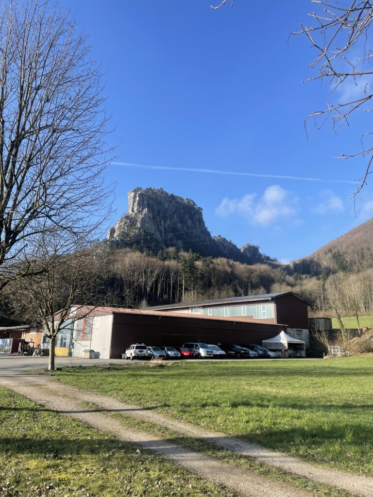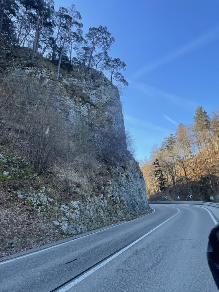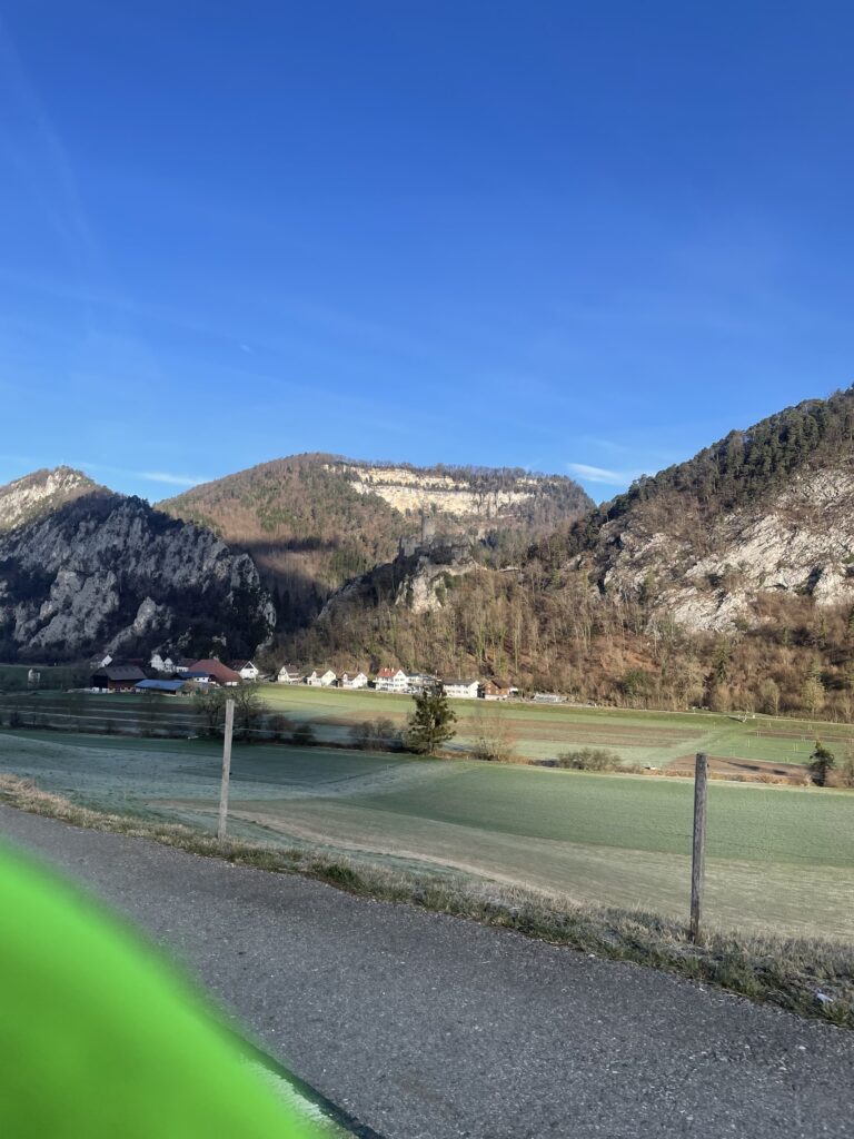 At the top in Langenbruck we stopped to put on an extra layer for the descent, then rolled down. About 8 km (5 mi) later we reached Balsthal, greeted by sunshine and genuinely pleasant temperatures.