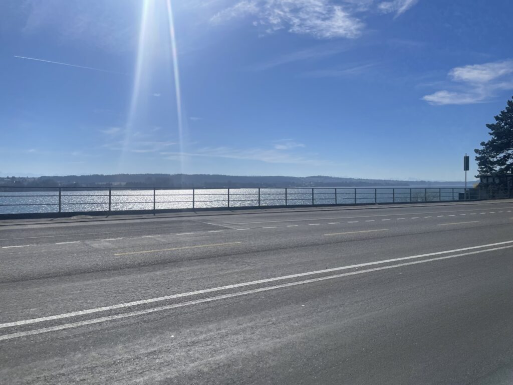 After about 120 km (75 mi) of headwind and constant small climbs, we finally reached Yverdon and turned west. Tailwind cycling remains one of life’s few unambiguous upgrades.