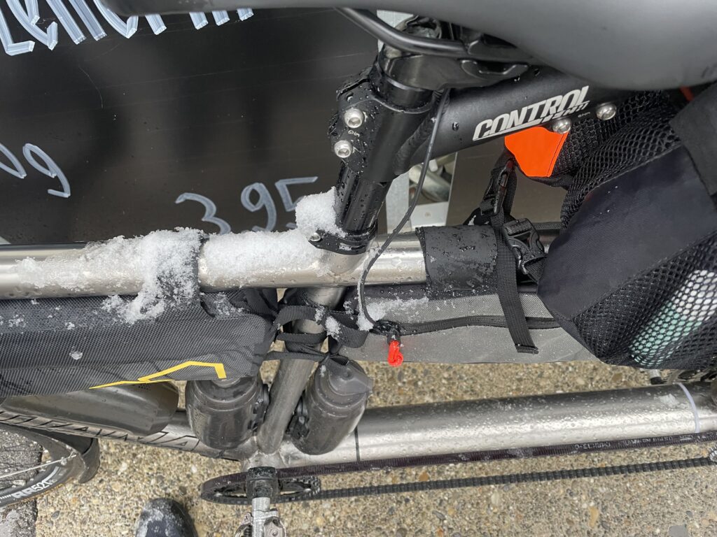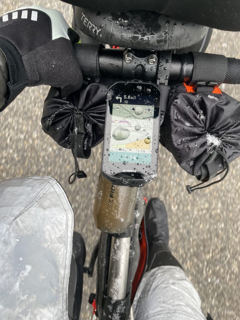 At one point the tandem started to shake, and that is when I realised Marco was shaking from the cold, sending vibrations through the entire bike. His winter gloves were completely soaked, making his hands so cold it was becoming dangerous. He switched to his fingerless summer gloves, which was somehow warmer, and allowed him to use the brakes properly again. He later told me he could not feel the Di2 buttons and was essentially guessing his shifts, but still had just enough circulation left to brake. When your hands get too cold to brake properly, the situation becomes medically interesting in ways I prefer to avoid.